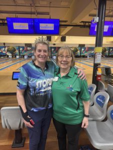 Rose Hudson, Pasco WA won the WA State Senior Queens. This is a back to back win for Rose! She beat Deb Lee from Canada 439-356. Deb came up the stepladder defeating April Lord-Wittig 310-305, then Cheryl Gould 355-325.